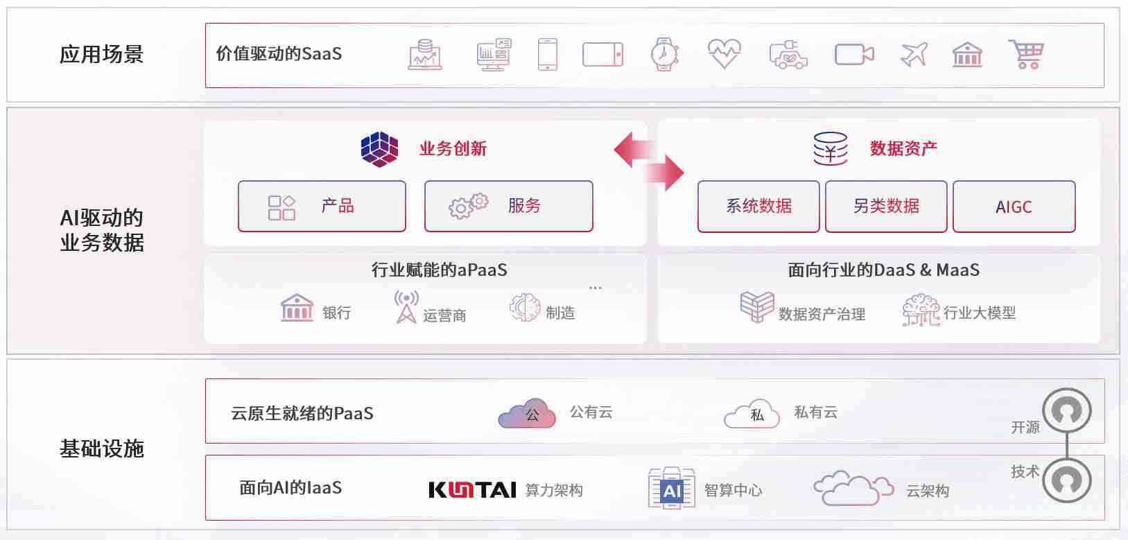数字时代,,围绕企业数字化转型的关键要素,,,EBPAY钱包官网数码开创性的提出数云融合战略和技术体系框架,,着力在云原生、、数字原生、、、、AI原生和信创产业上架构产品和服务能力,,为处在不同数字化转型阶段的快消零售、、、、汽车、、、金融、、医疗、、、、政企、、教育、、、运营商等行业客户提供泛在的敏捷IT能力和融合的数据驱动能力,,,,构建跨界融合创新的数字业务场景和新业务模式,,,助力企业级客户建立面向未来的核心能力和竞争优势,,,,全面推动社会的数字化、、、、智能化转型升级。。